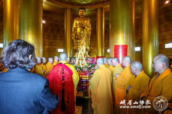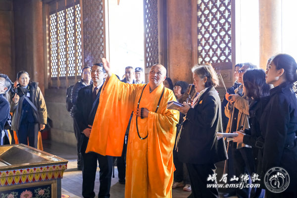 诗琳通公主一行到达金顶后,宾主双方在卧云禅院客堂座谈交流并互赠礼品,其间永寿大和尚向诗琳通公主介绍了峨眉山佛教的历史及发展,希望加强两国佛教界的交流与合作。诗琳通公主表示,泰国是庙宇林立的“千佛之国”,佛教文化悠久厚重,泰国佛教界与峨眉山的交往一定会更加紧密,达成更多的合作。随后,永寿大和尚等在弥陀殿为公主举行祈福法会,并陪同公主朝礼十方普贤圣像、在华藏寺大雄殿敬香礼佛、参观金殿并合影留念。