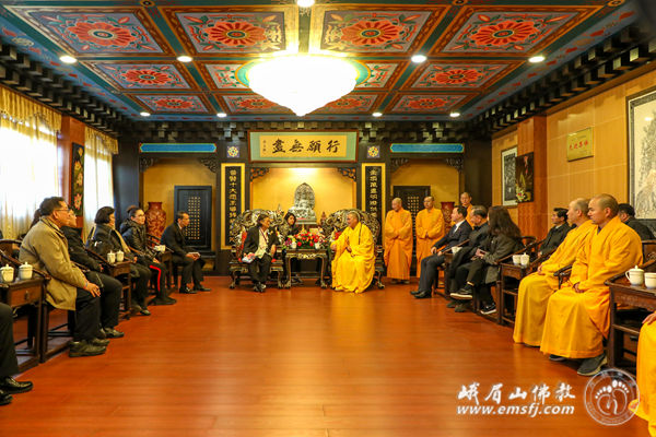 2018年4月9日,泰国诗琳通公主率领泰国访问团,在乐山市委副书记、市长张彤等领导的陪同下,前往峨眉山金顶华藏寺参访,中国佛教协会副会长、峨眉山佛教协会会长、峨眉山方丈永寿大和尚,峨眉山佛教协会副会长心定法师、宏开法师,秘书长传法法师及华藏寺僧众热情接待。