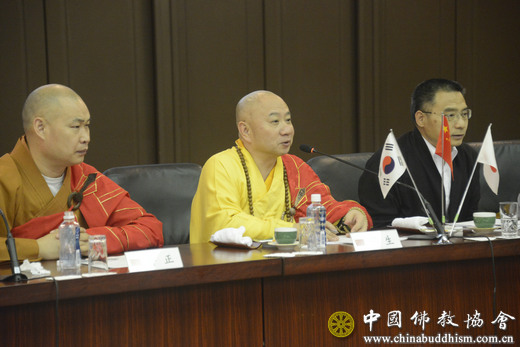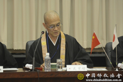 日本日中韩国际佛教交流协议会理事长武觉超长老在会上发言