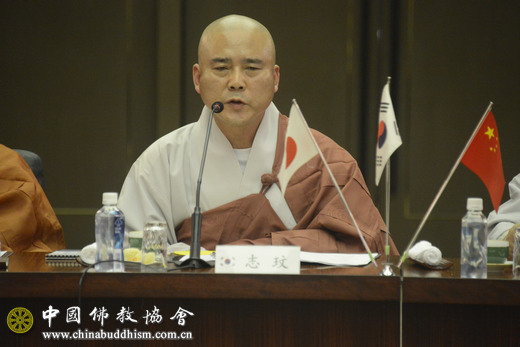 韩国佛教宗团协议会事务总长志玟法师在会上发言
