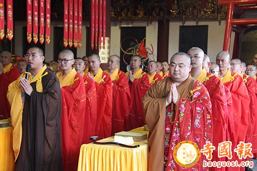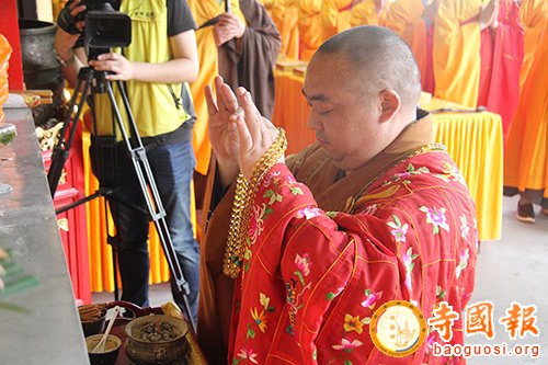 寺内钟鼓齐鸣,两序弟子肃立合十,至诚迎请本寺方丈昌智大和尚主法。在唱赞声中,昌智大和尚拈香礼佛,众功德主有序上香,虔诚礼拜。