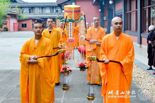为贯彻落实学院实践课程,从实践中引导学僧体证佛法,2018年4月9日,在佛学院法师指导安排下、由男众部本四学僧组织策划的佛七法会正式开始。本次佛七礼请陕西西安香积寺本昌大和尚主七。9日晚七点,佛七法会进行起七洒净仪式,由本昌大和尚主法,佛学院男众部师僧及众善信居士如法如律参加洒净仪式。