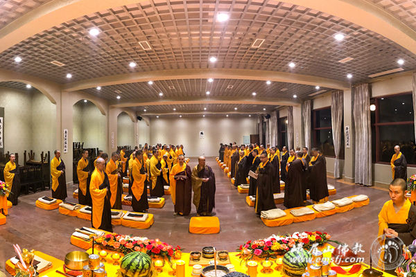 洒净仪式如法进行,会场庄严肃穆。维那师引领大众唱诵《大悲咒》、《十小咒》、《心经》等,并将此功德回向法界众生。