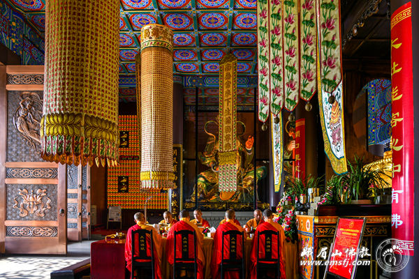 水陆法会法华坛设于大佛禅院普贤殿。 诸法师及众善信将在七日法会期间恭诵《大乘妙法莲华经》二十四部,行大悲愿,得大加持。