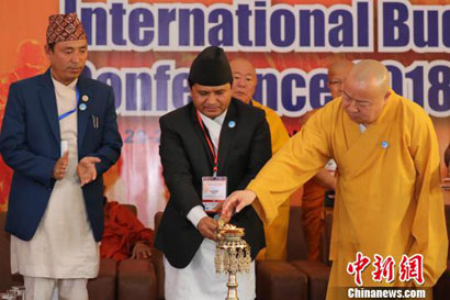 4月28日,2018国际佛教大会28日在尼泊尔中华寺举行。