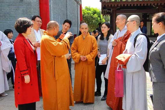4月26日上午,法门寺佛学院教务长果定法师、办公室主任仁渡法师在陕西法门寺热情接待了来访的大韩佛教曹溪宗一行16人,佛学院讲师慧海法师、隆行法师等陪同参访。