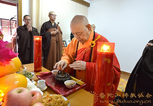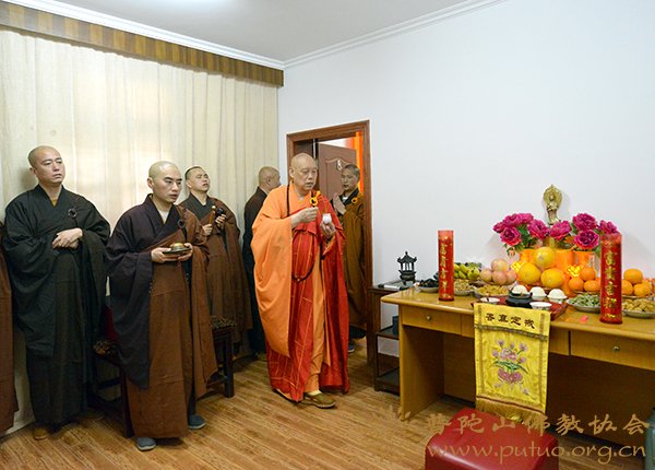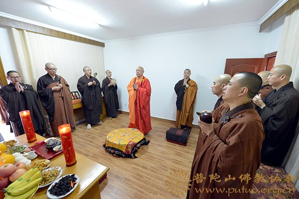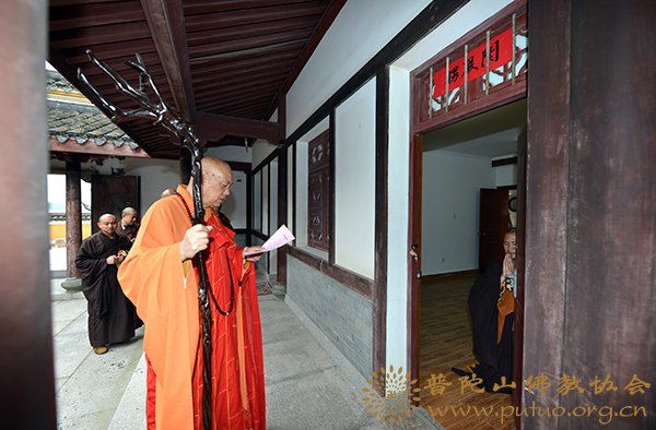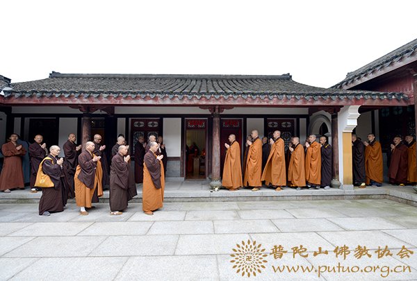普陀山佛教协会会长道慈大和尚为古佛洞恒虚法师送关