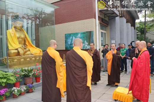 庆祝仪式前,演觉法师还率领北京广济寺僧众在大使馆释迦牟尼佛像前举行了诵经祈福仪式。