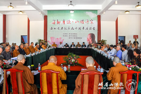 当日下午,海山长老诞辰90周年座谈会在海山念佛堂召开。会上,海山长老的弟子粟李琼、觉行法师、吴恭全等回忆了海山长老一言一行中所体现出来的人格魅力,分享了海山长老对他们所产生的深刻影响。随后,专家学者代表王炎平、向世山、段玉明等分别发言,对海山长老学修理念进行了阐释,对海山长老的时代担当精神予以了高度赞扬。永寿大和尚最后从佛教文化振兴、当代僧人所应承担的历史使命的角度,对海山长老予以了赞誉,同时希望佛教界以长老为范,勤修佛法,慈悲济世,爱国爱教,推动四川佛教事业迈上新高度、为实现中华民族伟大复兴的中国梦精进不息。