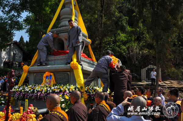 随后举行了海山长老灵骨舍利入塔安奉仪式。永寿大和尚、清德老和尚等诸山大德及众多佛弟子迎请海山长老灵骨舍利至塔林,在塔前举行长老灵骨舍利入塔法会后,以香华供养,奉骨入塔。至此,海山长老诞辰90周年系列纪念活动圆满。