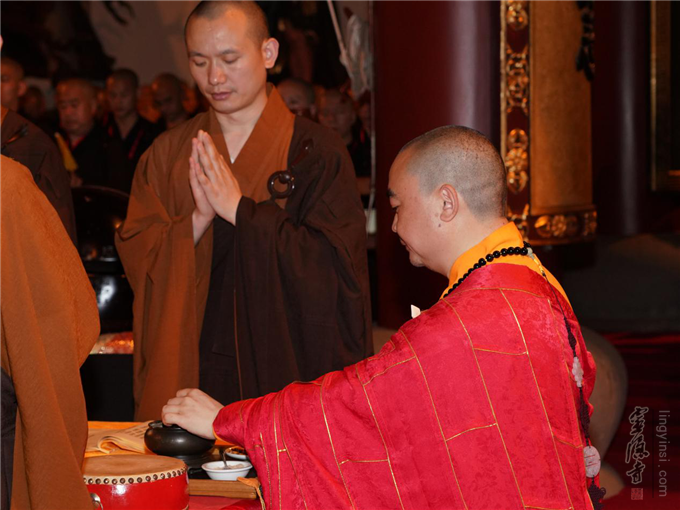 灵隐寺三坛大戒法会,常住慈悲,特别安排,分别在一坛正受沙弥戒,二坛正受比丘戒之前,各放一次瑜伽焰口。在三坛正受菩萨戒之前,再为诸戒子以前的六亲眷属和冤亲债主授幽冥戒。
