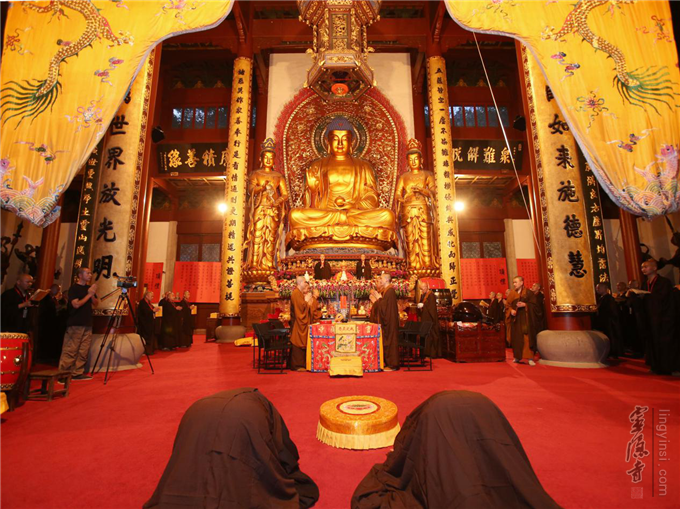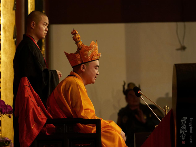 5月17日晚,佛光映照灵隐寺药师宝殿。全体戒子齐聚,恭迎开堂大师父芳振律师慈悲主法,传授幽冥戒。