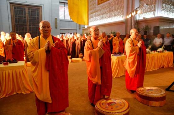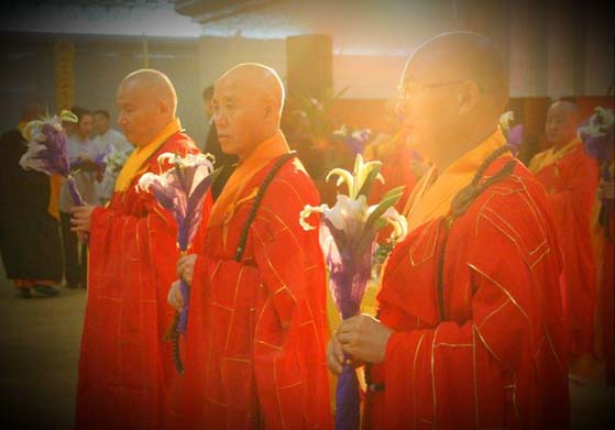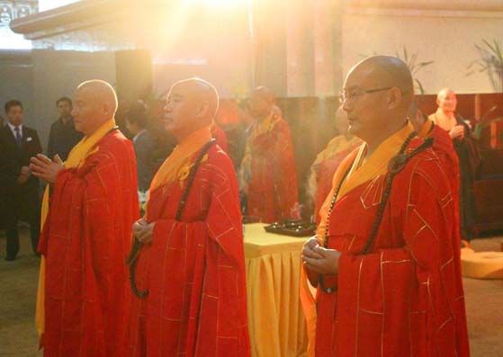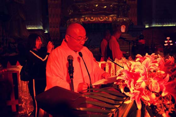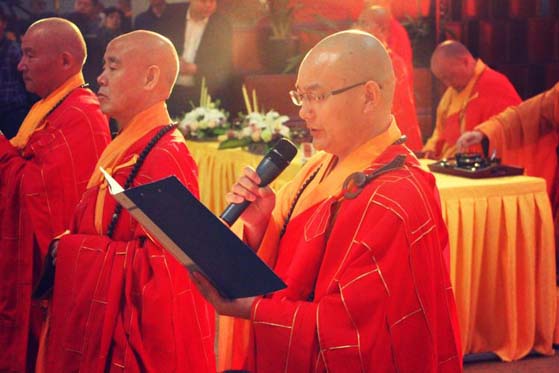 受学诚大和尚委托,贤空法师宣读吉祥周朝礼大典祈愿文: