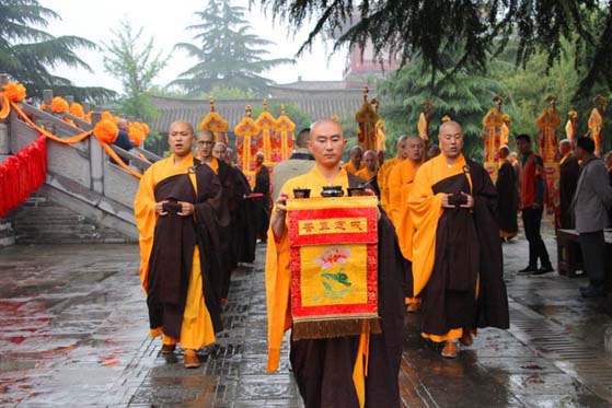 中国佛教协会副会长、北京广济寺方丈演觉大和尚,法门寺首座演峰法师,中国佛教协会教务部主任长顺法师,陕西省佛教协会副会长、宝鸡市佛教协会会长、法门寺监院贤空法师,宝鸡市佛教协会副会长、眉县圆觉寺监院曦明法师,法门寺副寺来正法师,法门寺副寺圆诚法师,法门寺丈室书记悟道法师,法门寺堂主昌恒法师,法门寺法门寺知客仁渡法师,宝鸡市佛教协会办公室主任果金法师。