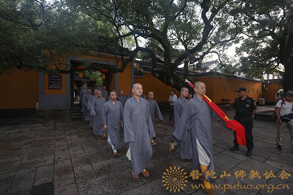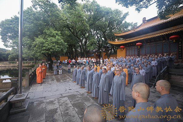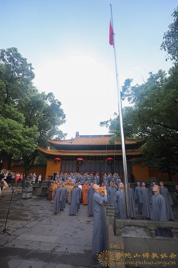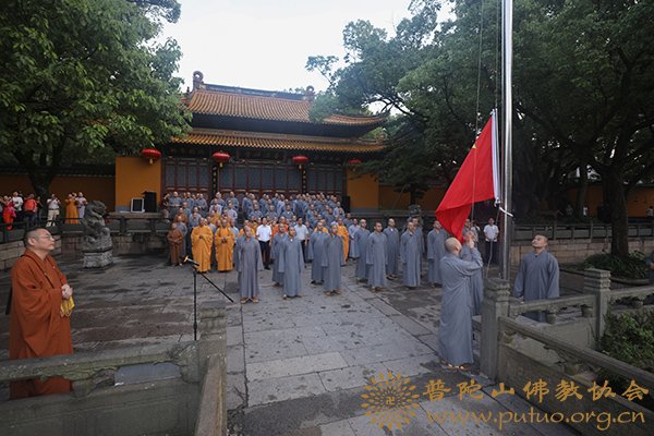 2018年9月21日,为响应“全国性宗教团体联席会议关于在宗教活动场所升挂国旗的倡议”,进一步增强宗教界人士和信教群众的国家意识和公民意识,普陀山佛教协会在普济禅寺山门前举行庄严肃穆的升国旗仪式。