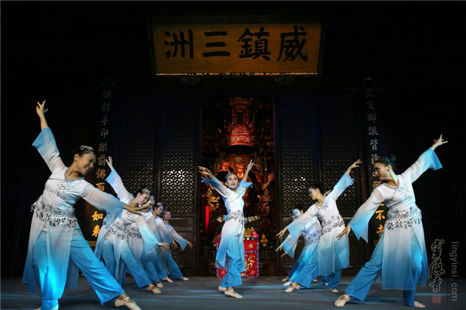 云林志工艺术团舞蹈组献演的是群舞《望月》。轻柔妙曼的古典舞姿,将“天上一轮才捧出,人间万众抬望眼”,人们追求幸福、向往光明的愿望,表现得酣畅淋漓,阐扬尽致。