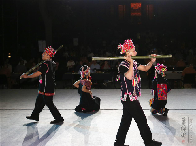 我国各民族的团结合作,创造了灿烂的中华文明。灵隐寺斋面馆的职工有几位是云南西双版纳哈尼族同胞。中秋之夜,嘉宾、善信和护法居士团聚一堂,哈尼族姑娘小伙用歌舞对大家的到来表达欢迎,同时期待下一次的聚会。哈尼歌舞表演唱《相聚相会》逐渐将晚会带入了高潮。