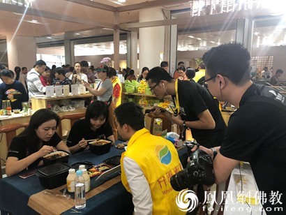 厦门素食展齐善自热素火锅试吃现场(图片来源:凤凰网佛教 摄影:丹真)