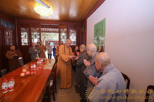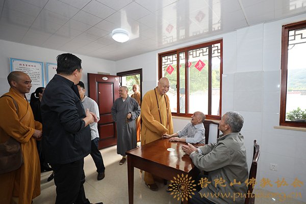 慰问中,大和尚还听取了相关负责人的工作汇报,并给予指导,嘱咐他们要进一步弘扬佛教优良传统,保持对老人的敬重之心、关爱之情,让老人们在普陀山老有所养、老有所依、老有所乐,安心安住,颐养天年。