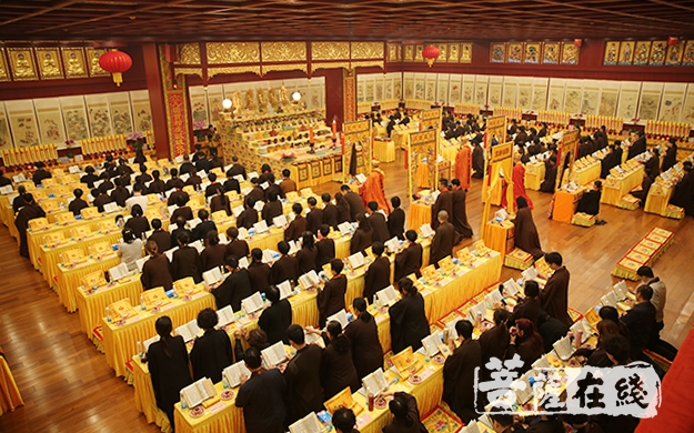 大众同诵经文(图片来源:菩萨在线 摄影:慧德)