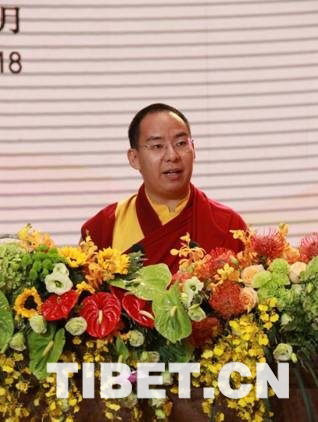 图为十一世班禅发表演讲(图片来源:中国西藏网)