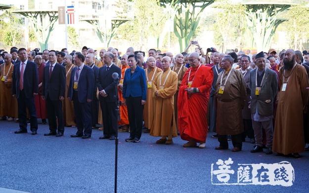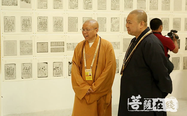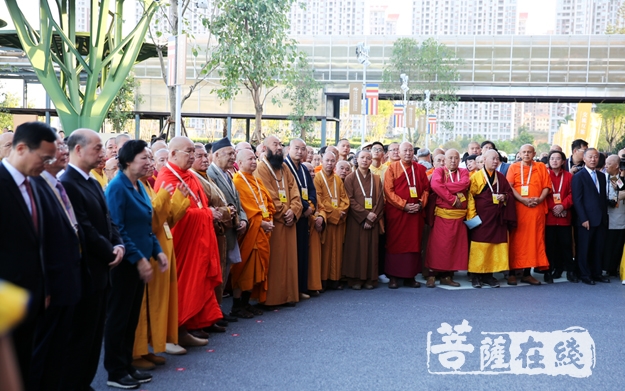 雷春美部长、郑建闽副省长、黄进发厅长、林宝金书记、刘金光社长、演觉副会长、帕松列龙庄勐副会长、珠康副会长、梵智长老、宽静理事长等一起为第五届世界佛教论坛图片艺术展揭幕,并与出席仪式的嘉宾们步入展馆饶有兴致的参观欣赏图片及展品。