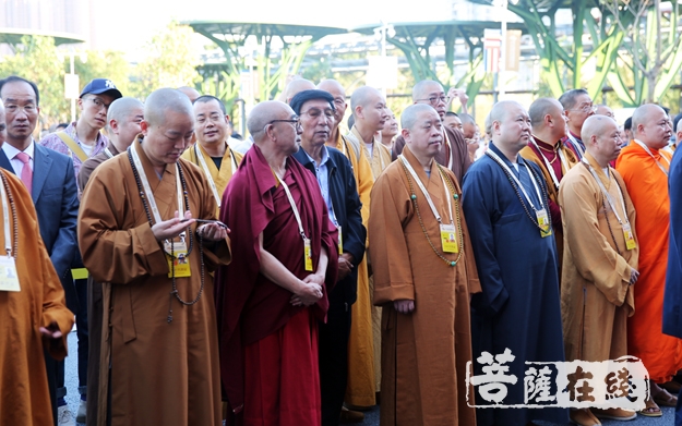 出席第五届世界佛教论坛图片艺术展揭幕仪式的大德法师(图片来源:菩萨在线 摄影:妙雨)