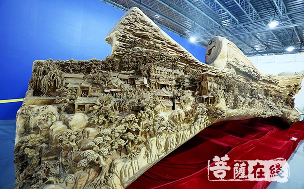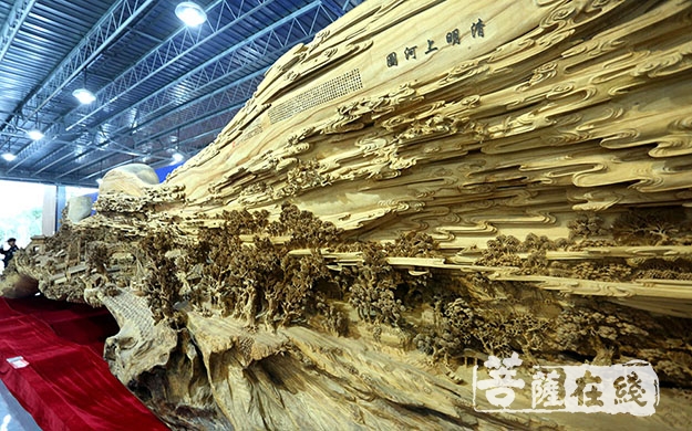 佛教与艺术精品展内展示的雕刻版清明上河图(图片来源:菩萨在线 摄影:妙梵)