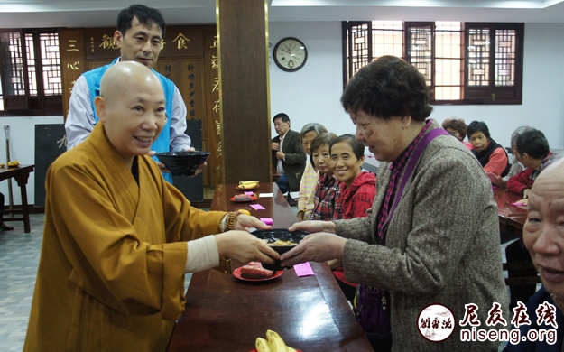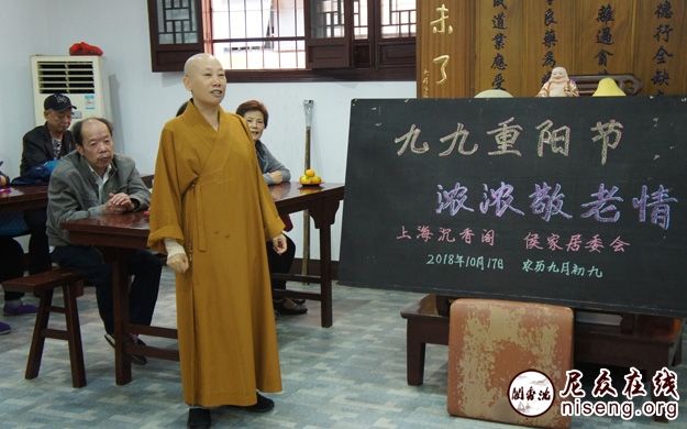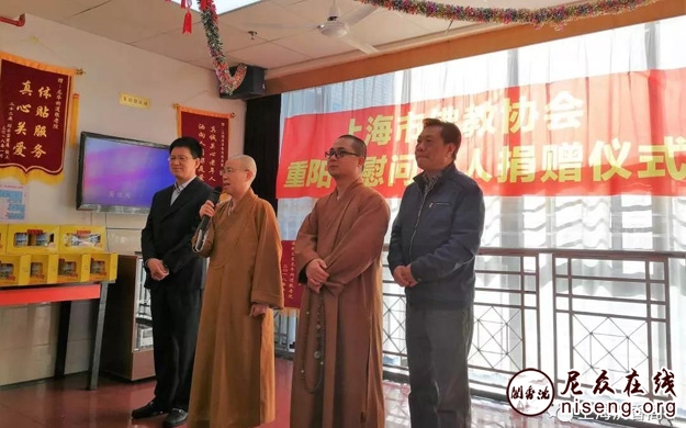 九九重阳凝聚了中华民族千秋万代敬老爱老的浓浓深情和生生不息的民族风范,本寺住持定慧法师代表上海市佛协,来到徐汇区敬老院、福利院慰问老人,并赠送节日礼品和祝福。