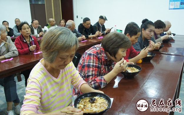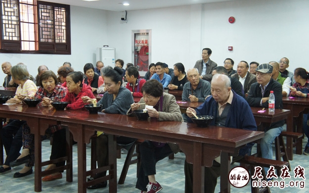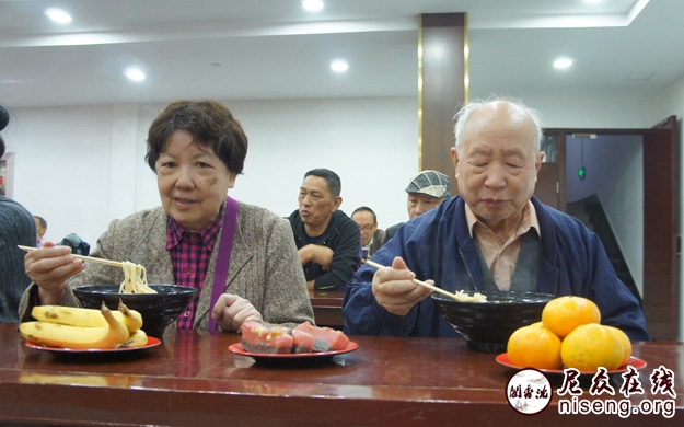 本寺监院清慧法师代表沉香阁为老人们送上了祝福,衷心祝愿老人们重阳节快乐,身体健康,福寿绵延!老人们相聚在这里,吃着重阳糕和热腾腾的长寿面,脸上洋溢着满满的幸福。