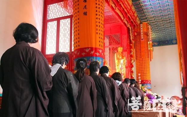 檀香缭绕,梵呗悠扬,众善信于释迦牟尼佛圣像前,虔诚上香,恭敬礼佛,祈请诸佛菩萨慈悲加持,道场清净。善信居士将于法会期间,在常住法师的引领下,至诚拜忏,障消慧显,善愿圆满,善愿圆满,一切众生,皆得法益。