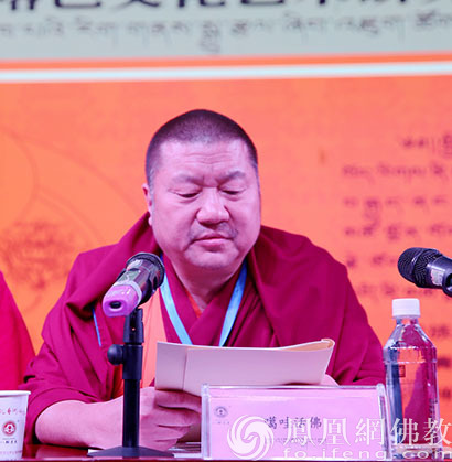 中国佛教协会常务理事、青海省佛教协会副会长噶尔哇•阿旺桑波讲话(图片来源:凤凰网佛教)
