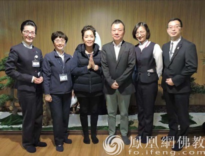 歌手齐豫在中国台湾慈济大爱电视台总监叶树姗、《点灯‧人生好风景》节目制作人张光斗等人的陪同下拜会证严法师(图片来源:凤凰网佛教 摄影:慈济基金会)