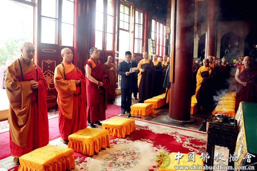 随后,中国佛教协会副会长演觉法师、宗性法师、胡雪峰喇嘛共同为诵经法会主法。纪念仪式由中国佛教协会秘书长刘威主持。