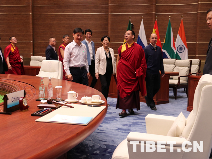 11月1日,十一世班禅参观金砖国家领导人厦门会晤会址、百年鼓浪屿博物馆、中国唱片博物馆、鼓浪屿万国建筑博览、鼓浪屿风琴博物馆等地。图为十一世班禅参观厦门国际会展中心。