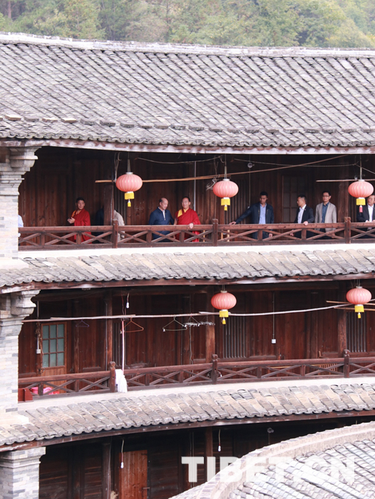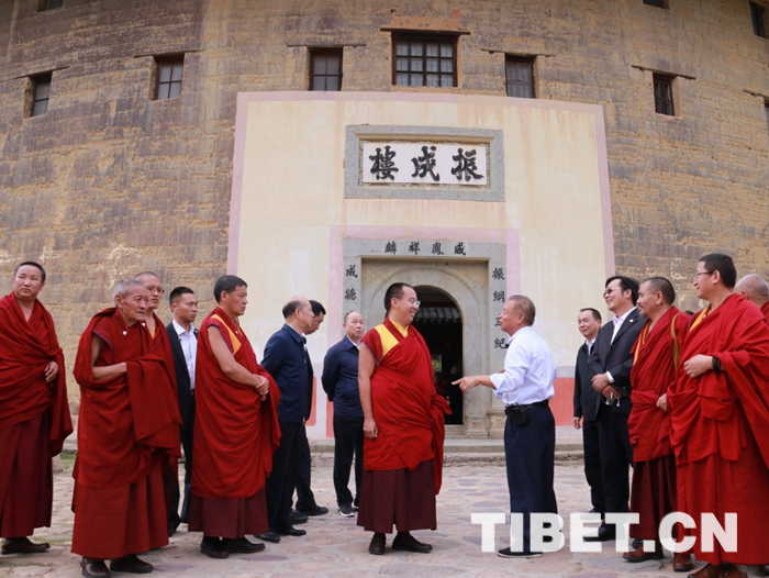 振成楼位于龙岩市永定县湖坑镇洪坑村中南部,是现存完好的客家土楼之一。图为十一世班禅参观永定土楼。