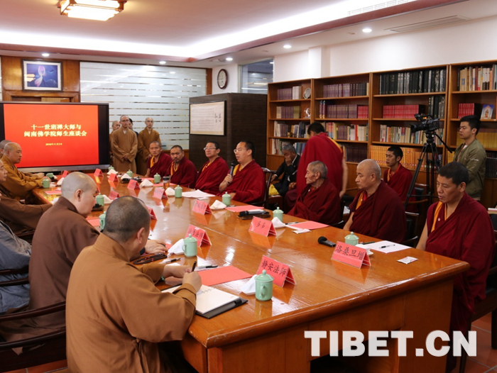 11月2日,十一世班禅与闽南佛学院师生座谈。座谈期间,十一世班禅勉励大家要做一名爱国爱教、守法持戒的僧人,并向大家提出“目光放远、心胸宏大、脚踏实地、立足当下”的四点希望。