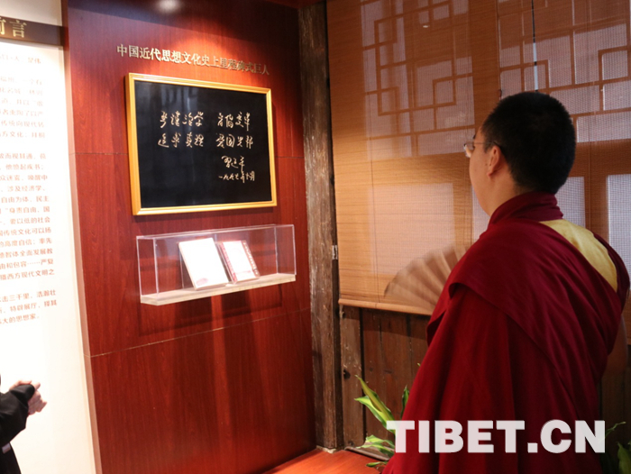 11月4日至5日,十一世班禅在福州参观林则徐纪念馆、严复纪念馆、林觉民冰心故居、福建省民俗博物馆。图为十一世班禅在严复纪念馆参观。
