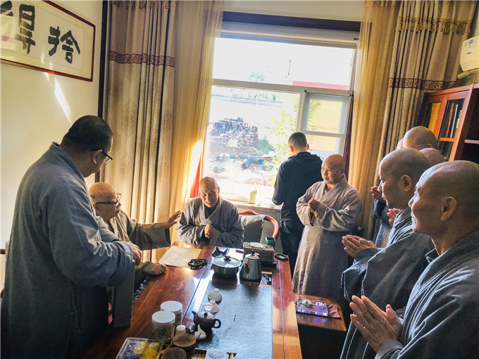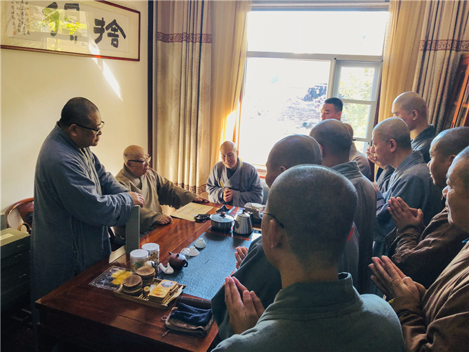 2018年10月28日上午9时,庐山东林寺法主和尚传印长老于东林寺上客堂亲切接见了祖庭主要班首执事。