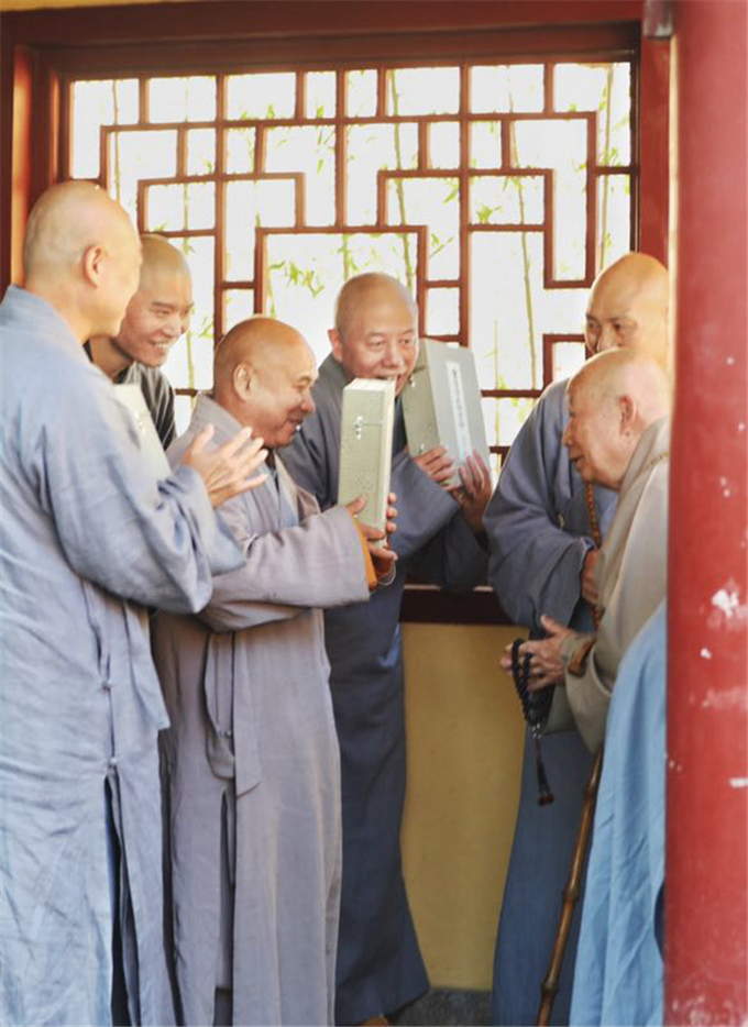 “鸿志含辛茹苦,宜人崇信尚行。东林大佛历艰程,愿力世间最胜。”诵到这里,传印长老转头赞叹大安法师说:“你的志愿现世可传啊”,大安法师谦逊地回以“阿弥陀佛”。