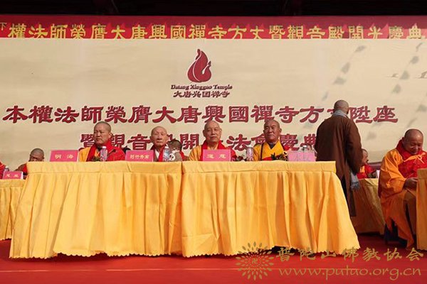 2018年11月3日上午,中国佛教协会副会长、普陀山佛教协会会长、普济禅寺方丈道慈大和尚应邀出席本权法师升座典礼并为其送座。秋阳高照,钟罄和鸣,梵呗声声。伴随寺院清净的钟声,河北省唐山市大唐兴国禅寺内诸山长老、大德法师、各级领导、十方檀越善信,共同见证本权法师荣膺大唐兴国禅寺方丈升座庆典法会,中国佛教协会副会长明海大和尚、静波大和尚等诸山长老也参加了升座庆典。
