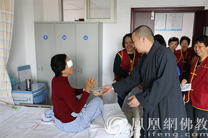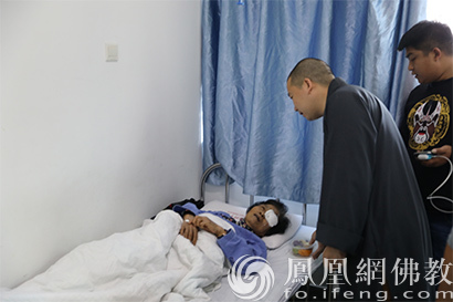 鸿山寺监院、鸿山慈善会常务副会长庚心法师赴医院看望患者(图片来源:凤凰网佛教)