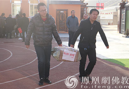 向榆林佳县朱家坬镇中心小学捐赠书籍(图片来源:凤凰网佛教 摄影:邵卓)