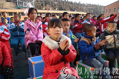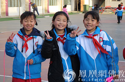 朱家坬镇中心小学活泼可爱的学生(图片来源:凤凰网佛教 摄影:邵卓)