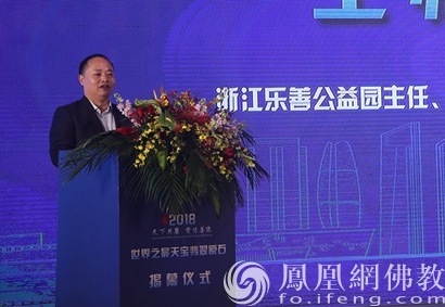 浙江乐善公益园主任、宁波福善文化发展有限公司董事长史腾龙致辞(图片来源:凤凰网佛教 摄影:林恩)