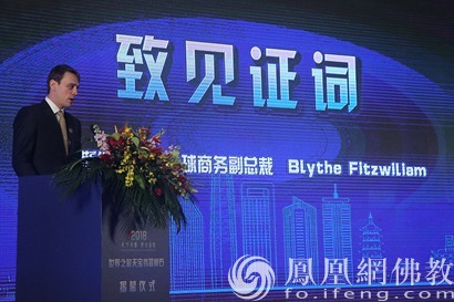 吉尼斯世界纪录全球商务副总裁Blythe Fitzwiliam致辞(图片来源:凤凰网佛教 摄影:林恩)