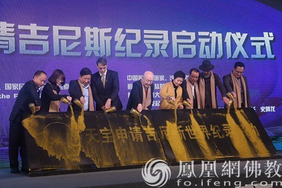 据悉,“天宝”原石重达19.7 吨,高3.3 米,内径2.45 米,平均周长5.5米。如此巨大的“天宝”原石,在节目仪式上正式发起了对吉尼斯世界纪录的申请。吉尼斯世界纪录全球商务副总裁Blythe Fitzwiliam(布莱斯·菲茨威廉)特别莅临会议现场,与第十届全国政协常委、民政部原副部长、国家民族事务委员会原常务副主任陈虹,凤凰网佛教总编辑崔明晨,中国著名书画家夏蕙瑛,中国著名书画名家、沙孟海第五孙沙家枥,慈溪杭州湾大酒店董事长胡永焕,天宝项目发起人张开贵,浙江乐善公益园主任、宁波福善文化发展有限公司董事长史腾龙等七位嘉宾共同启动了“‘天宝’申请吉尼斯世界纪录启动仪式”!