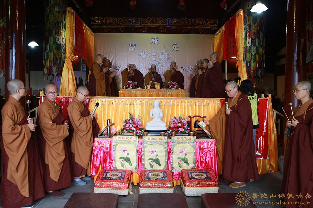 2018年12月1日至2日,普陀山普济禅寺(圆通禅林)戊戌年二部僧三坛大戒法会如法举行,女众部于圆通禅林戒坛为众新戒正授本法。