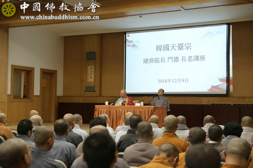 门德法师还受邀为中国佛学院师生做了题为《韩国佛教天台宗的历史和韩中佛教交流的未来方向》的专题讲座。向学副院长主持讲座。