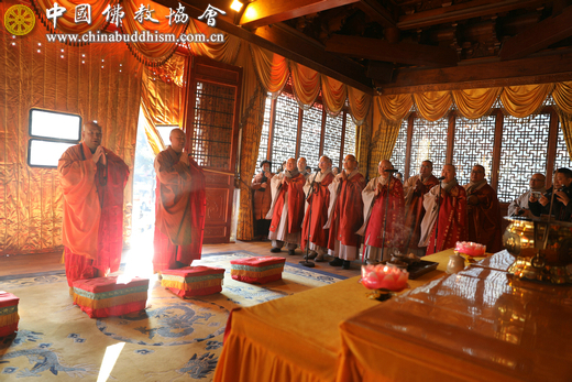 中韩佛教僧众在灵光寺佛牙舍利塔前举行祈祷世界和平法会